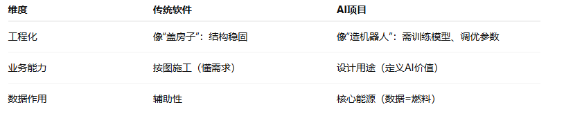 AI 项目和传统软件核心差异