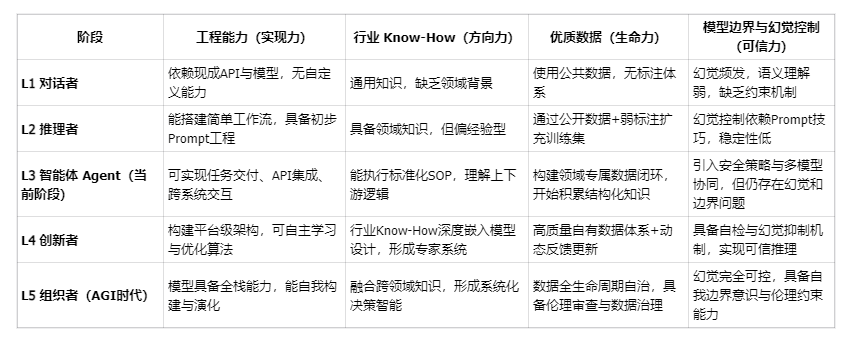 - L5: 组织者 —— 通用人工智能(AGI)或者超级人工智能(ASI),自主管理和优化决策复杂系统。