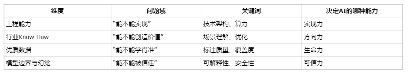 AI 的演进,本质是一个由工程实现力、行业理解力、数据驱动力、认知控制力共同推动的系统协同过程。它决定了智能系统从“可实现 → 可理解 → 可创造 → 可信任”的演化路径。